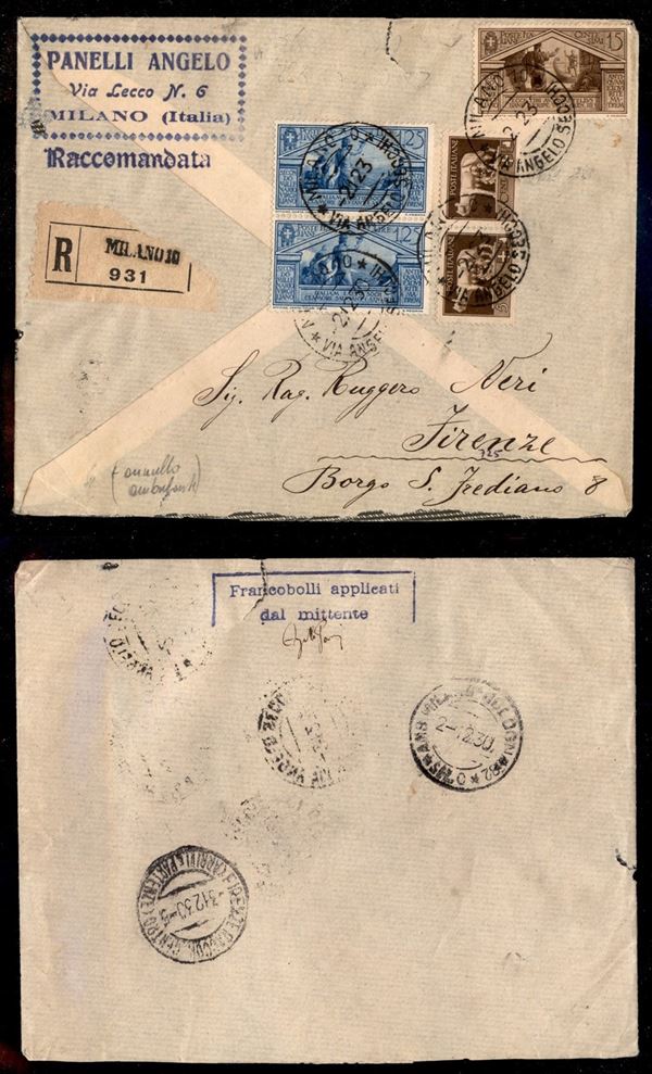 Virgilio (282 + 288 coppia) + complementari (243 coppia) - raccomandata da Milano a Firenze del 2.12.30