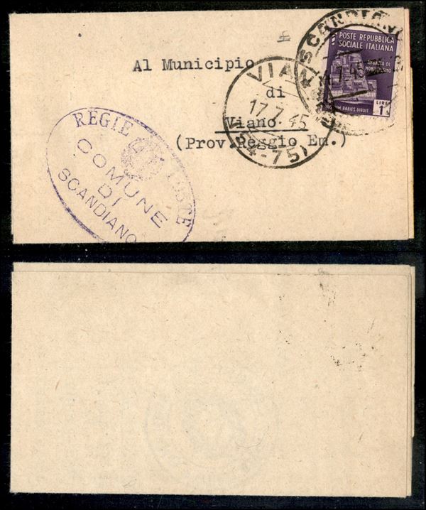 1 lira (509) isolato su piego da Scandiano a Viano del 17.7.45