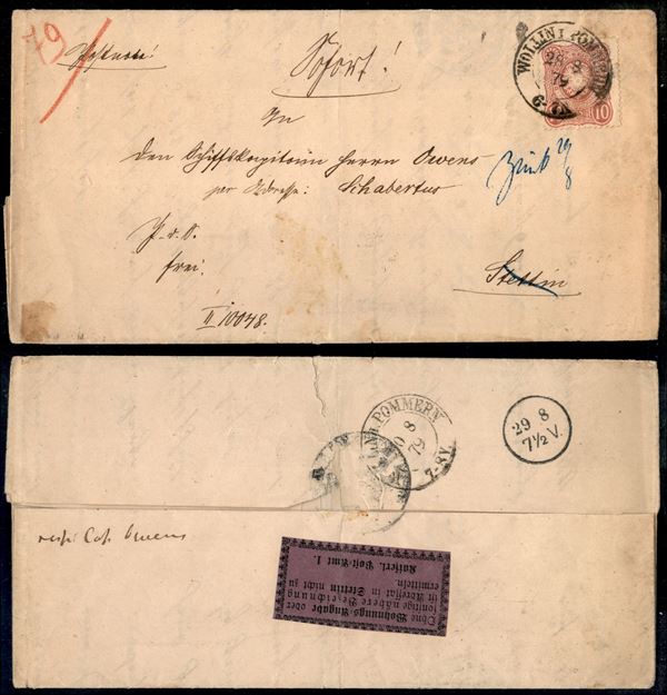 10 pfennige (33) su lettera da Wollin a Stettin del 28.8.79