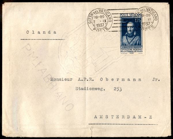 1,25 lire Stampa Cattolica (53) su lettera del 2.IX.1937 per l'Olanda - raro isolato