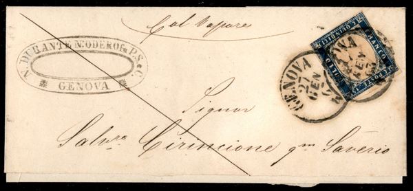 15 cent (11) su testatina di lettera da Genova a Cefalù del 27.1.63 (col Vapore)