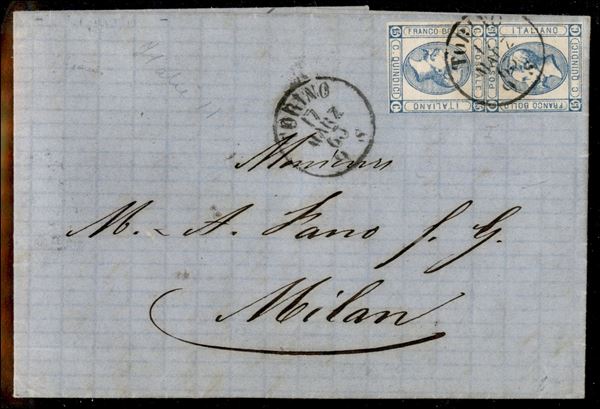 15 cent (12) - due pezzi ritagliati nei bordi e applicati a tete beche su lettera da Torino a Milano del 17.3.63