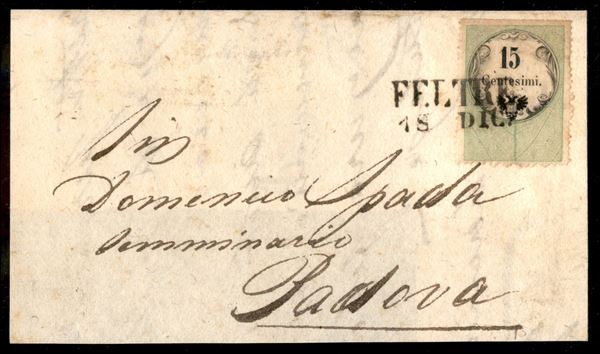 15 cent (3) su parte di lettera da Feltre a Padova - dentellatura superiore rasata