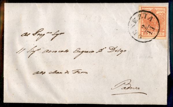 15 cent (6) con parti di filigrana su letterina da Venezia a Padova del 2.11.53