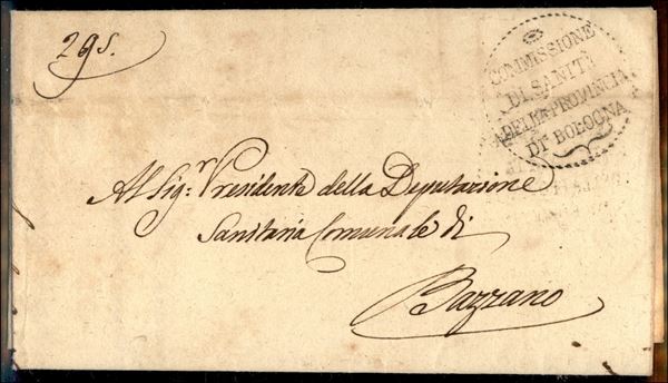 1837 - Commissione di Sanità della Provincia di Bologna - lettera per Bazzano del 22.4.37
