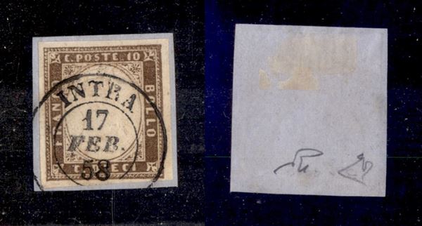 1858 - 10 cent (14b) usato a Intra 17.2.58 su frammento - Diena (850+)