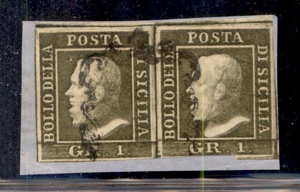 1859 - 1 grano (5) - coppia usata su frammento - pezzo destro stretto in basso