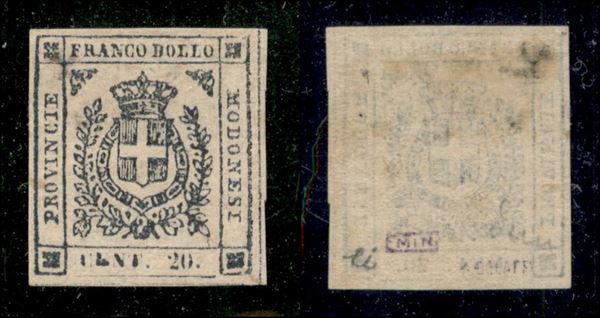 1859 - 20 cent (15) - gomma originale - lieve oleosità al retro - cert. AG (5000)