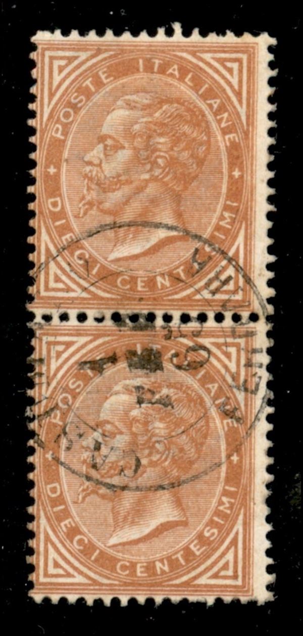 1863 - 10 cent De La Rue (L17) - coppia verticale usata a Casumaro Ferrara 1.2.65