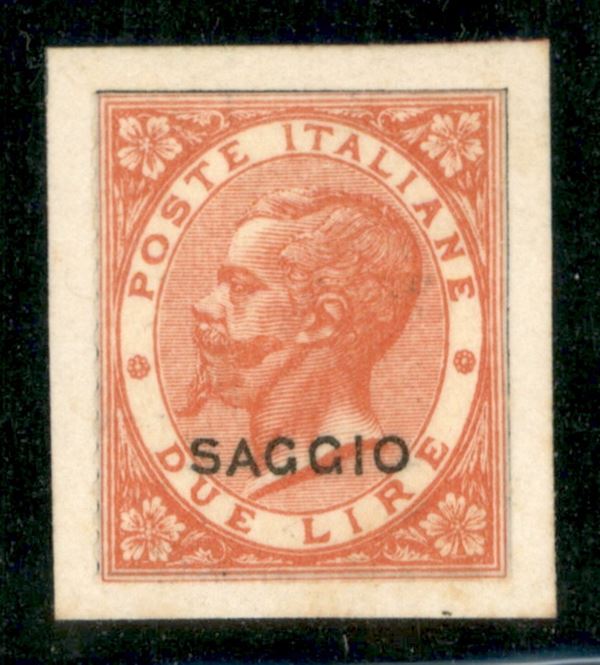 1863 - Saggio - 2 lire De La Rue (L22) - dentellatura ritagliata e applicato su cartoncino Menabrea