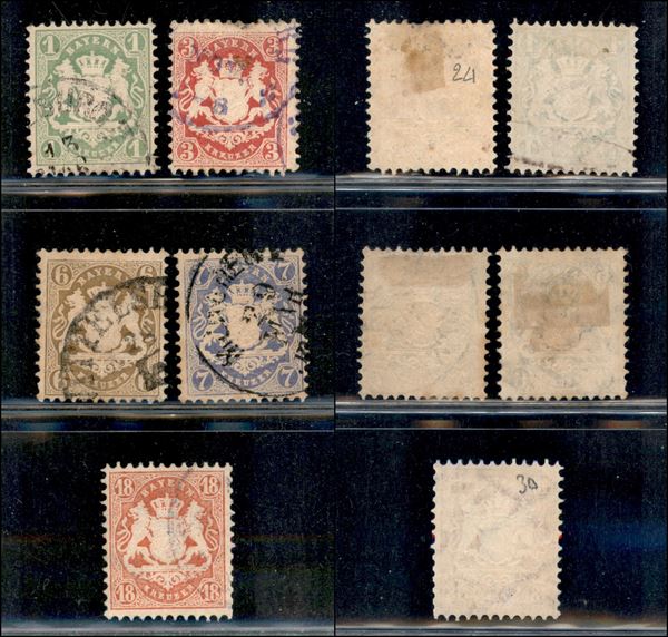 1870 - Baviera - Stemma (22x/25x - losanga corta) - 5 valori usati