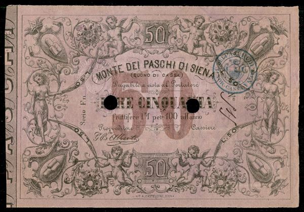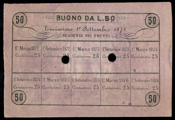 1871 (1 settembre) - 50 lire - Monte dei Paschi di Siena - Buono di Cassa