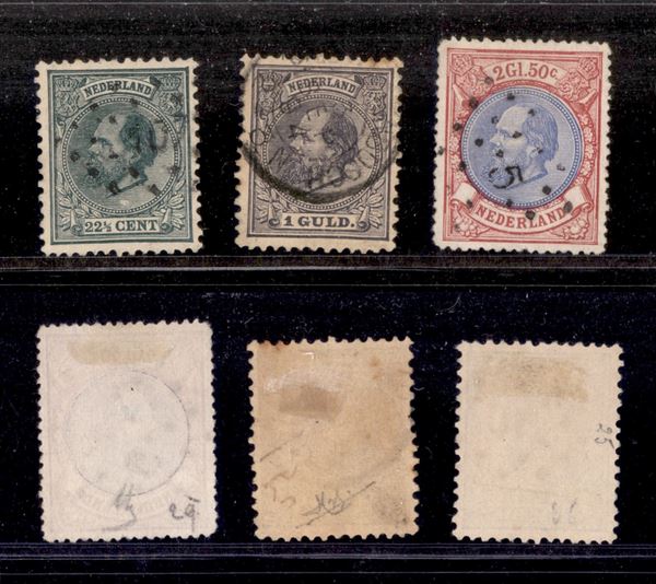 1872 - Guglielmo III - 22 1/2 cent + 1 guld + 2,50 guld (25D+28D+29A) - 3 valori della serie - usati