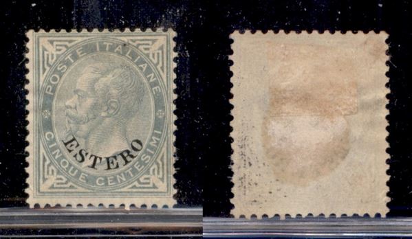 1874 - 5 cent Estero (3) - parte di gomma originale (forte linguella) - cert. AG (900)