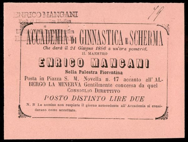 1886 - Firenze - due biglietti d'ingresso per manifestazioni