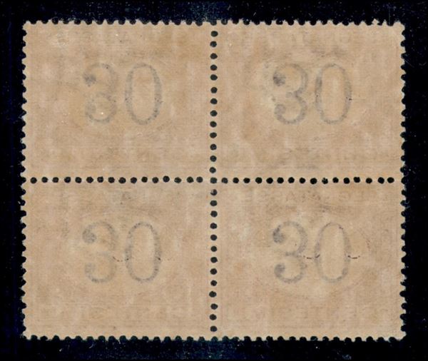 1890 - 30 cent Segnatasse (23a) - cifre capovolte - quartina - gomma integra