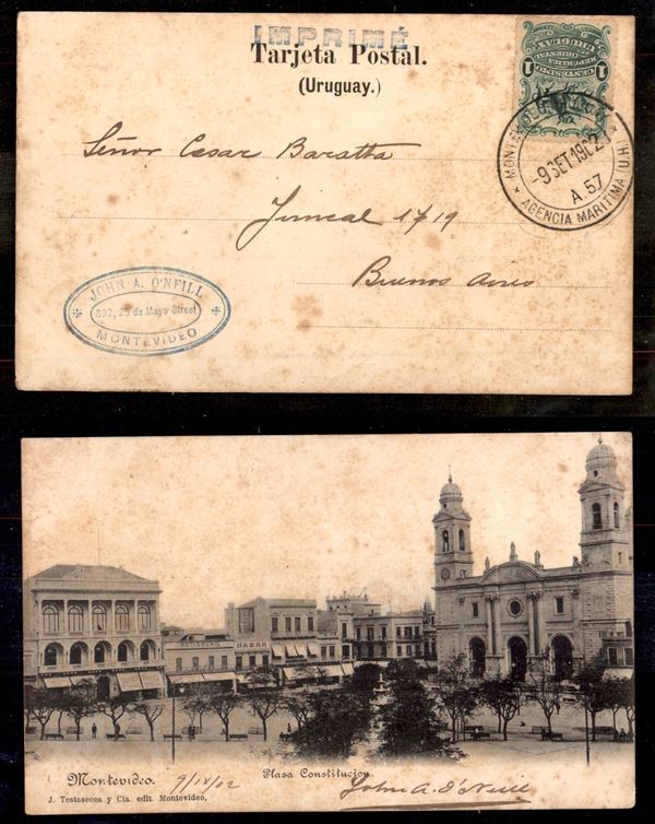 1902 – Cartolina illustrata da Montevideo (Agencia Marittima) a Buenos Aires