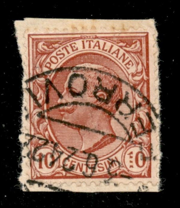 1906 - 10 cent Leoni (82q) - 1 a puntini - usato su frammento