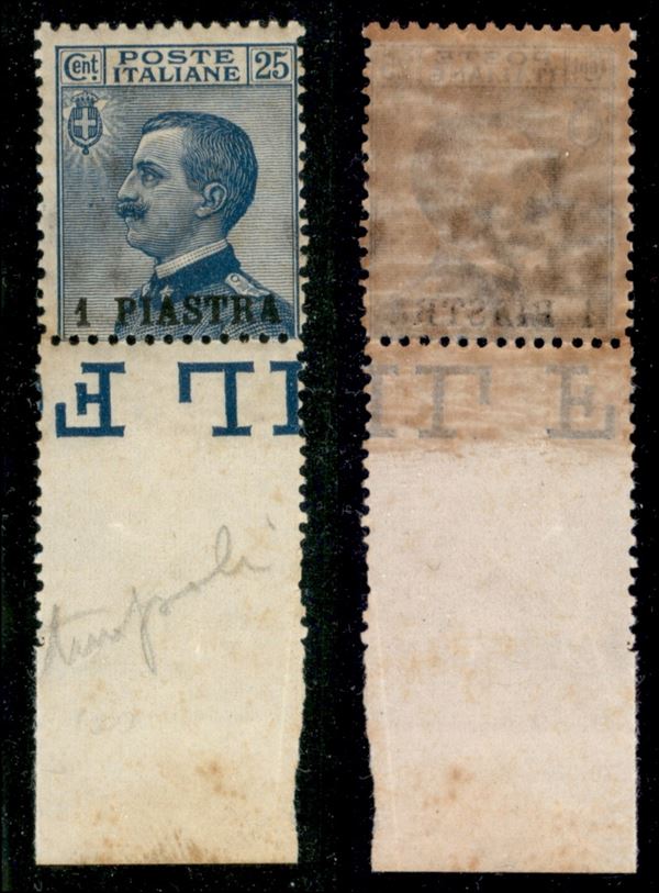 1908 - 1 piastra su 25 cent Michetti (11) bordo foglio - soprastampa in basso - gomma integra (200+)