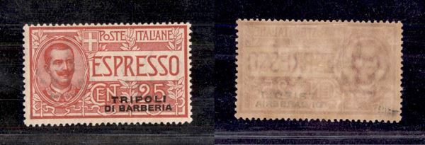 1909 - Espressi - 25 cent soprastampato (1) - soprastampa in albino a sinistra - gomma originale