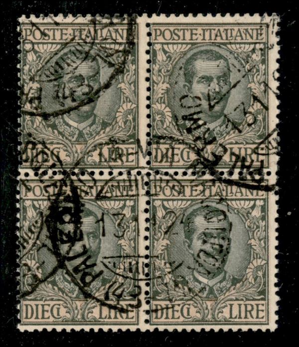 1910 - 10 lire Floreale (91) - in quartina - usato