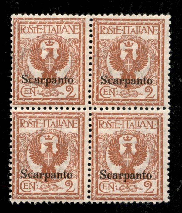 1912 - 2 cent Aquila (1) - quartina - gomma integra