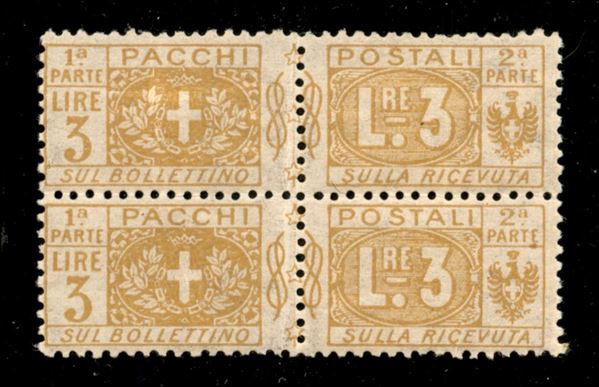 1914 - 3 lire Pacchi Postali (14) - quartina - gomma integra