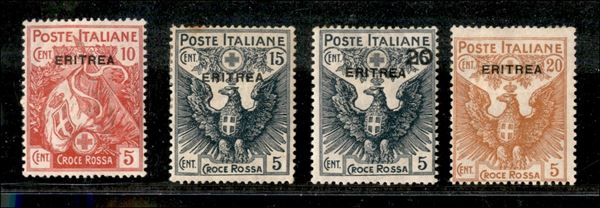 1916 - Croce Rossa (41/44) - serie completa - gomma originale - piccolo punto di ruggine in alto al 15 cent + 5 cent
