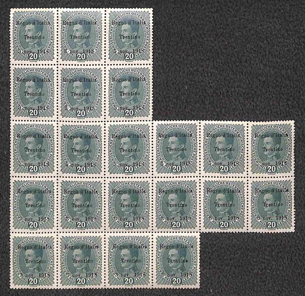 1918 - Blocco di ventidue del 20 heller (7) - gomma integra