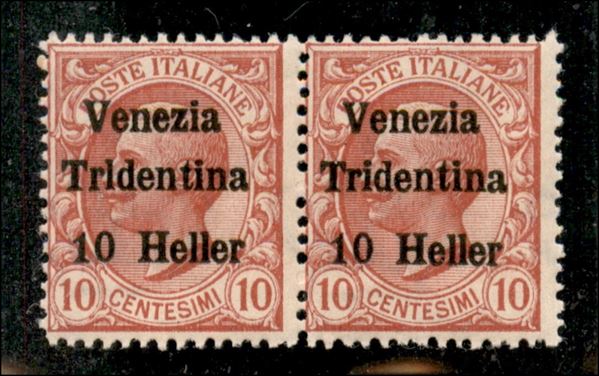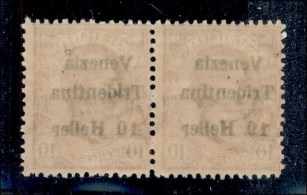1918 - Coppia del 10 heller su 10 cent (29 + 29c) con l al posto di i - gomma integra