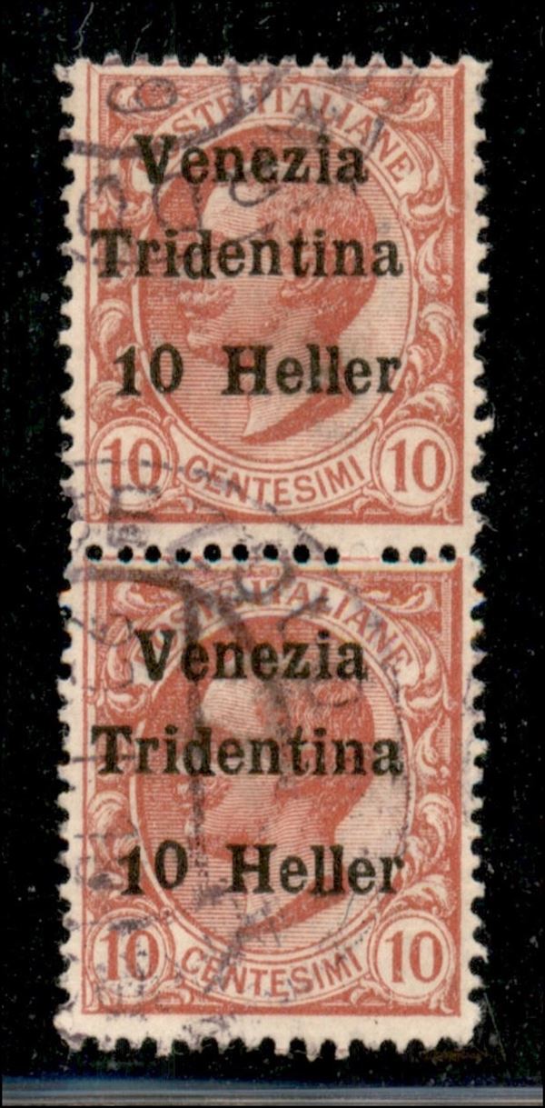 1918 - Coppia del 10 heller su 10 cent (29) con 1 spostato in basso su entrambi gli esemplari - usato