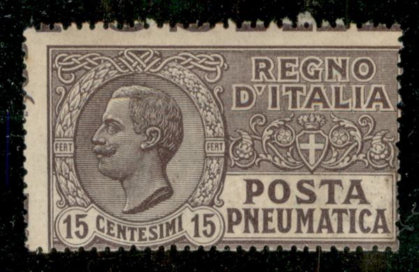 1921 - 15 cent Posta Pneumatica (2 - varietà) - dentellatura spostata in alto e a sinistra - non catalogato - gomma originale