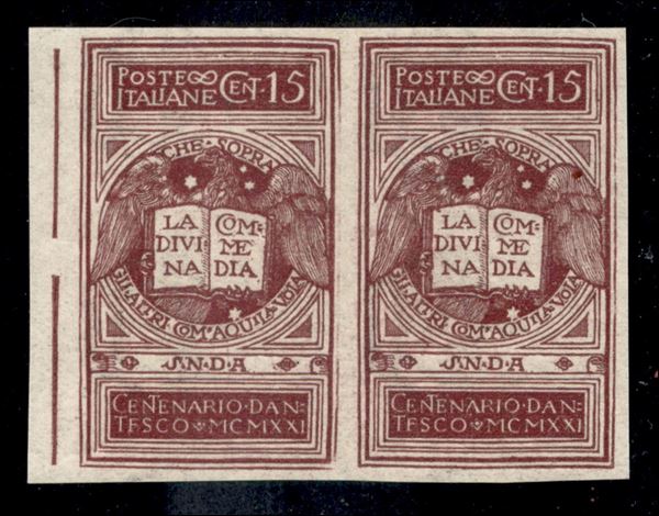 1921 - Dante Alighieri coppia orizzontale 15 cent non dentellata (116f) - gomma integra