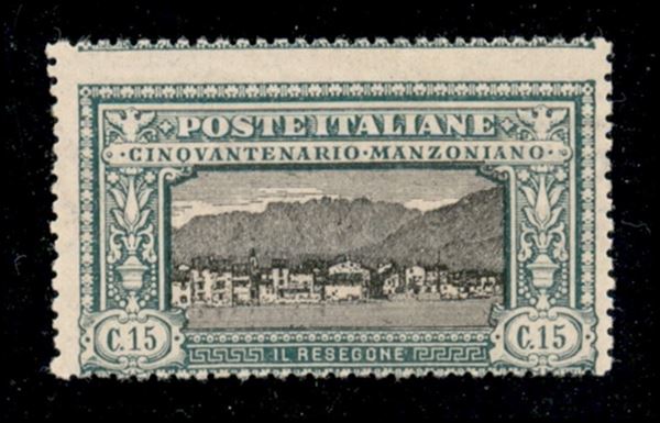 1923 - 15 cent Manzoni (152 varietà) - dentellatura orizzontale spostata in alto - gomma integra