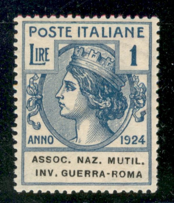1924 - 1 lira Assic. Naz. Mutil. Inv. Guerra-Roma (10) - gomma integra - ottimamente centrato