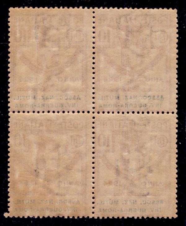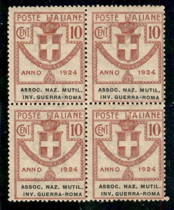 1924 - 10 cent Assic. Naz. Mutil. Inv. Guerra-Roma (6) - quartina - gomma integra