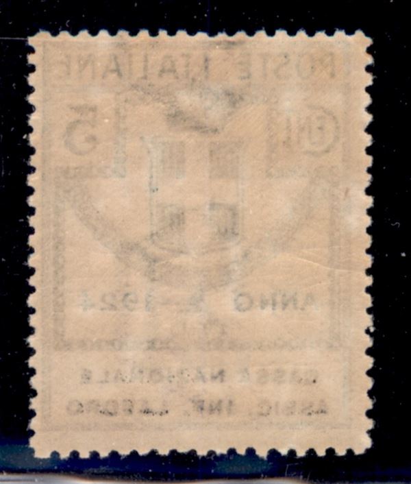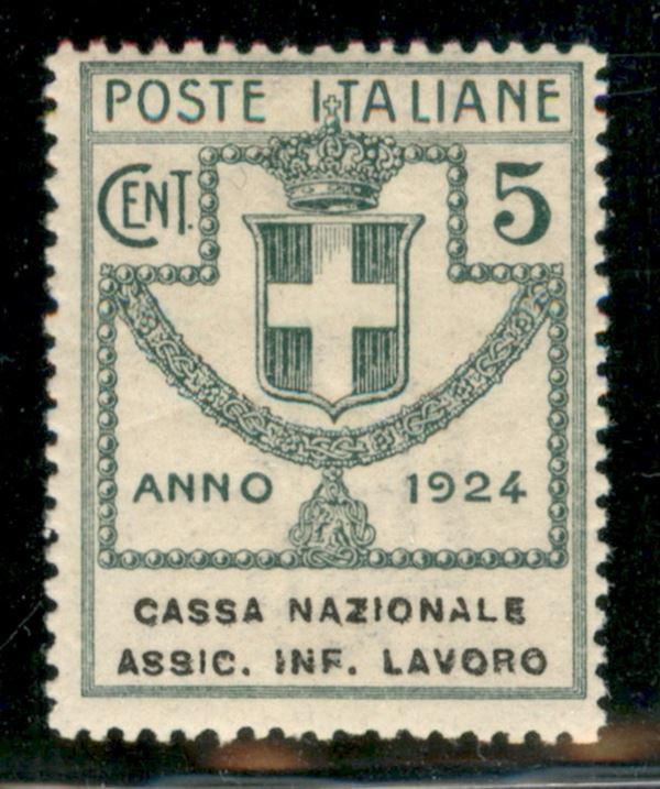 1924 - 5 cent Cassa Nazionale Assic. Inf. Lavoro (17 varietà) - stampa della dicitura leggermente slittata - gomma integra