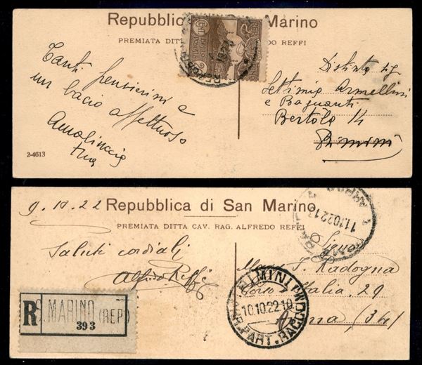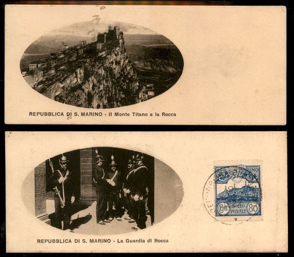 1924 - Due cartoline mezzo formato (cm. 15 x 14) affrancate una con 20 cent Vedute (73) e l'altra con 80 cent Vedute (78) - non comuni