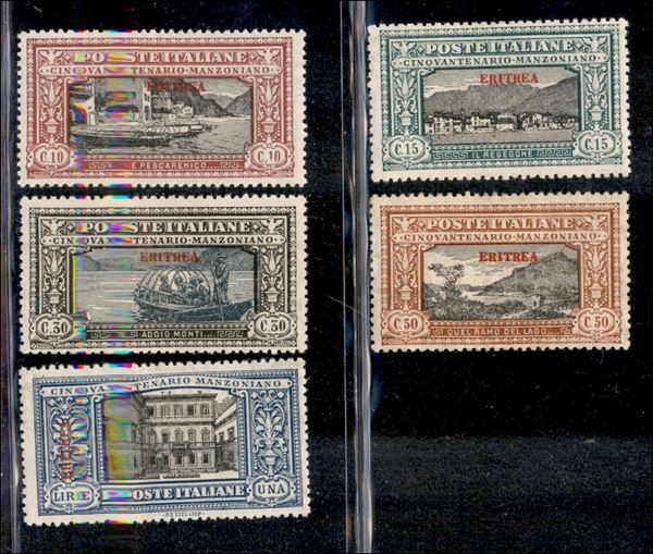 1924 - Manzoni (71/75) - i primi 5 valori della serie - gomma originale 50 cent difettoso al verso
