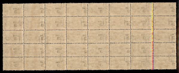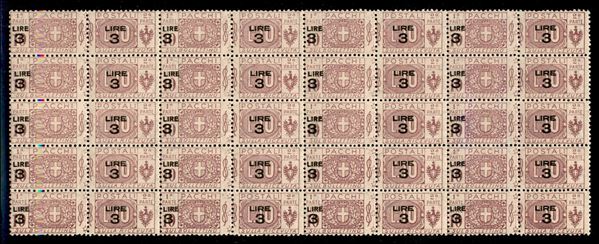 1925 - 3 lire su 10 Pacchi Postali (23) - blocco di 20 - gomma integra