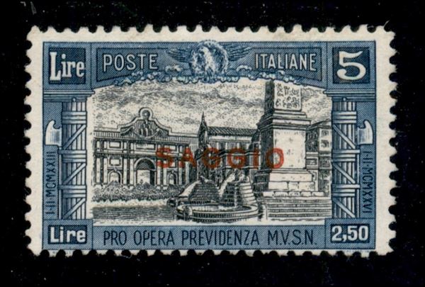 1926 - Saggio - 5 lire + 2,50 Milizia (209) - gomma integra