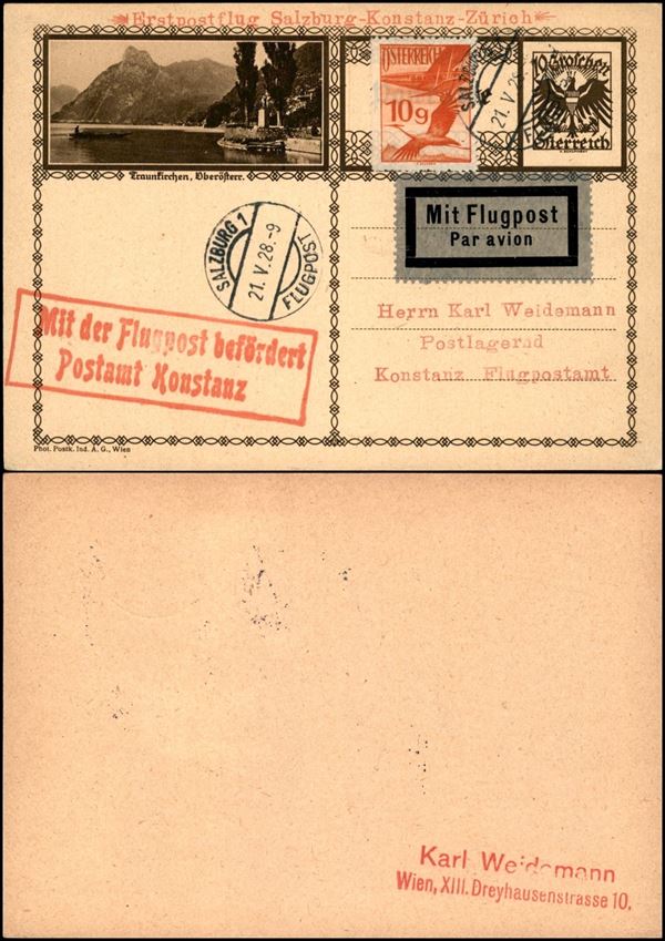 1928 (21 maggio) - Salzburg Kostanz - aerogramma del volo
