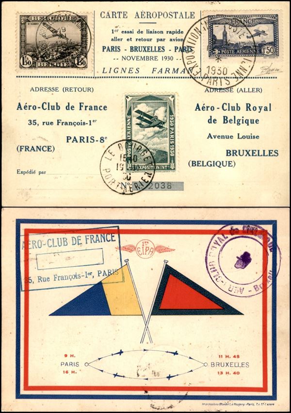 1930 (19 novembre) - Parigi Bruxelles Parigi - cartolina ufficiale del volo