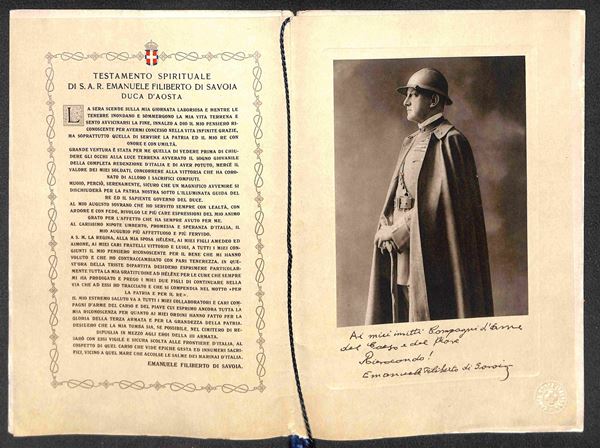 1931 (13 gennaio) - Terza Armata/Emanuele Filiberto Duca d’Aosta - Testamento Spirituale (in folder) Pro Croce Rossa - ottimamente conservato