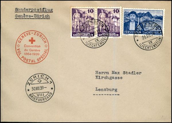 1939 (30 agosto) - Ginevra Zurigo - aerogramma dal Liechtenstein