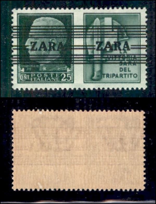 1943 - 25 cent Milizia (30 - terzo tipo) - A larghe + A strette - gomma integra (450)