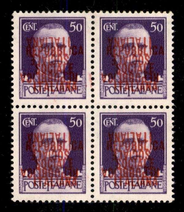 1944 - Quartina del 50 cent (493c) con doppia soprastampa di cui una capovolta - senza gomma