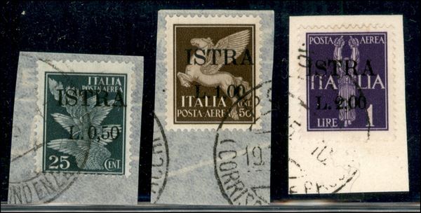 1945 - Soprastampati (34/36) insieme di 3 valori usati su frammento