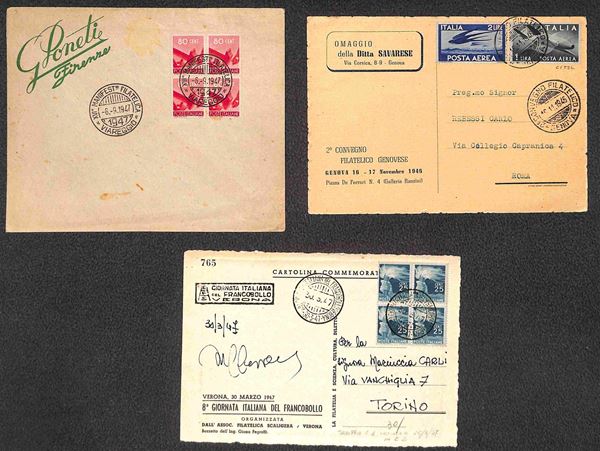 1946/1950 - Undici lettere e cartoline con annulli di manifestazioni filateliche e fiere commerciali del periodo