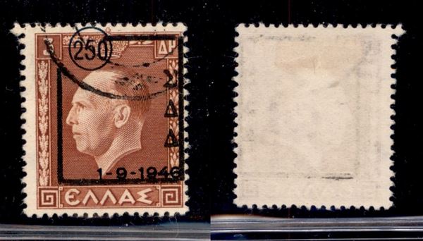1947 - 250 dracme su 3 (10aa) usato - cifre spostate a destra - non quotato usato